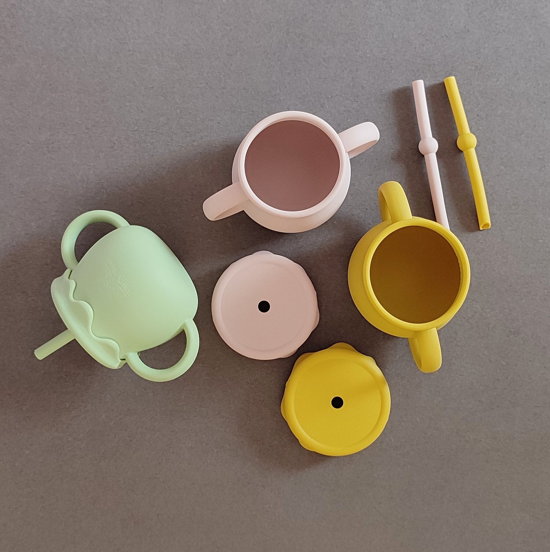 - 2-in-1 Silicone Sippy Cup (used as Straw cup and Open drinking cup)