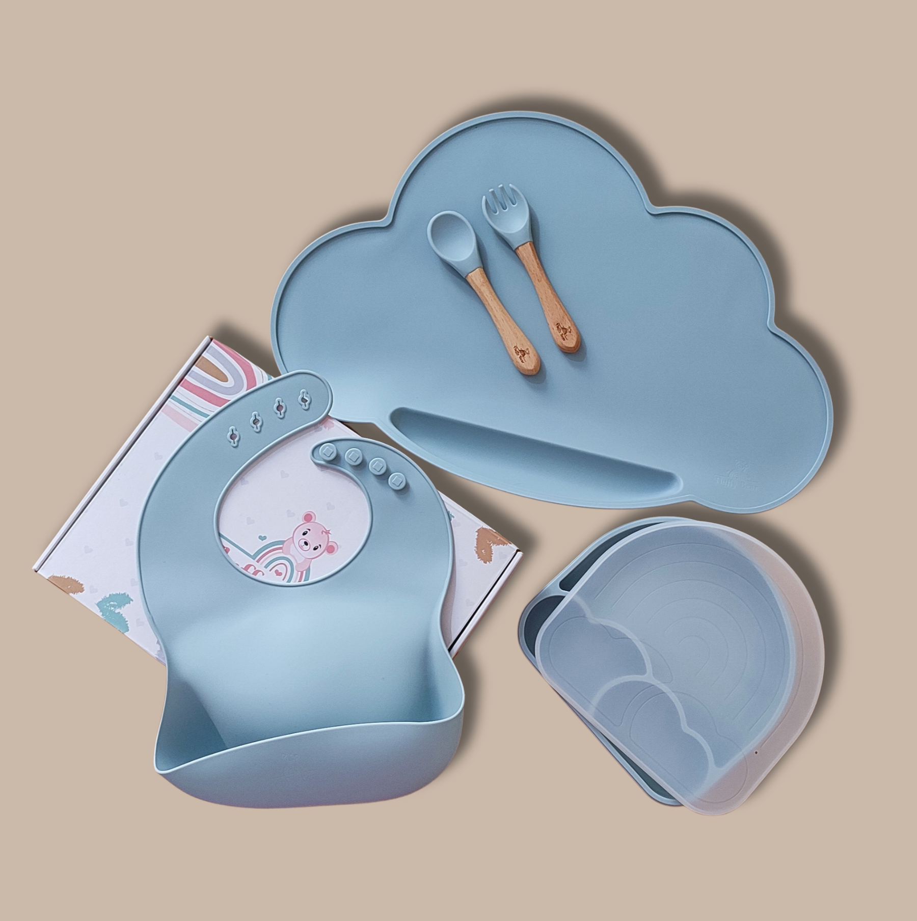 Silicone Baby Feeding Set - Weather - Dusky Blue