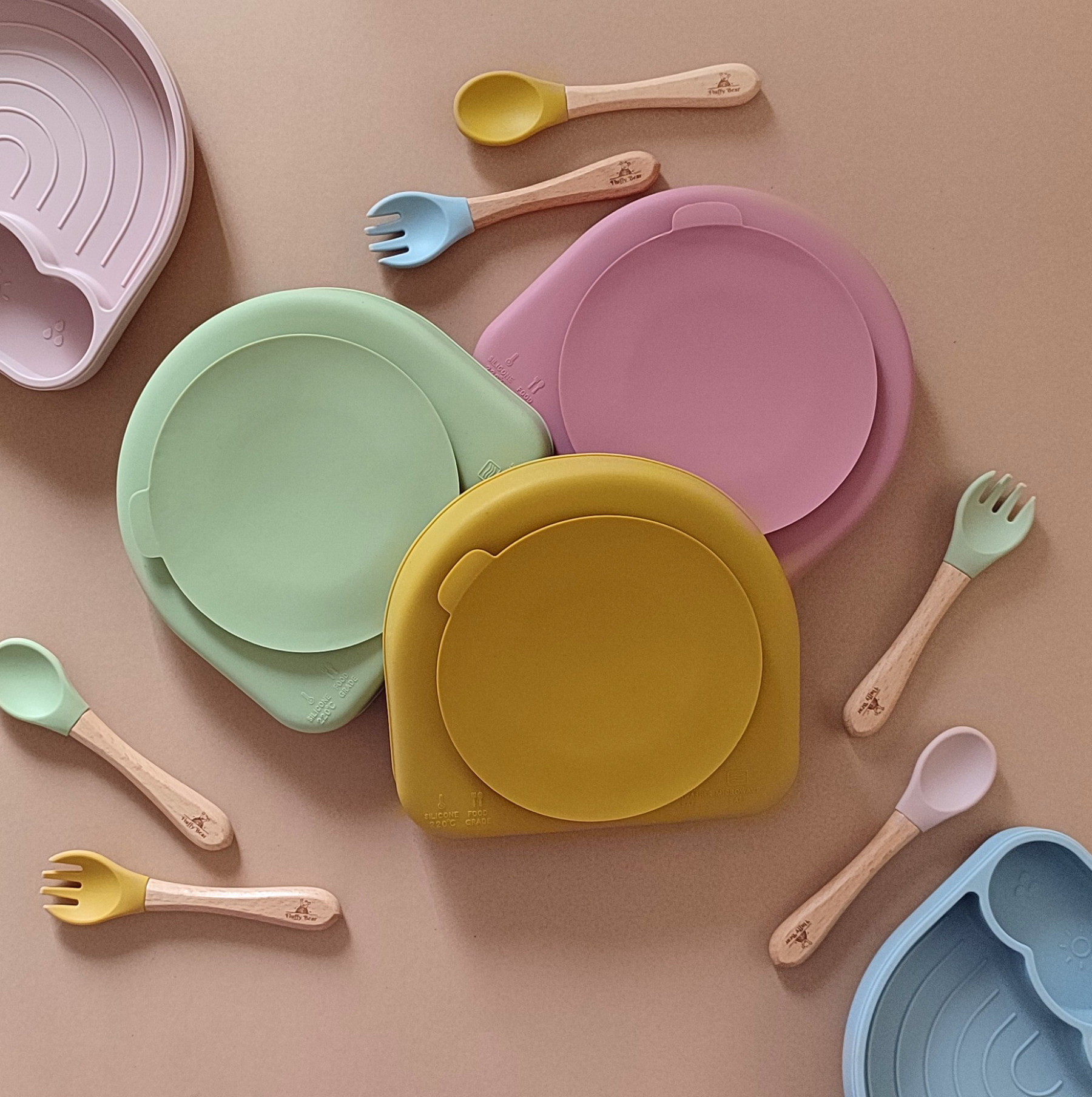 [Wooden Silicone Spoon and Fork] - Fluffy Bear's Wooden Silicone Spoon and Fork has soft head which doesn't harm babies’ gums. The ergonomic handle is designed for easy and firm grip. These Spoons and Forks are designed carefully to encourage child's fine motor, gross motor and social skills.