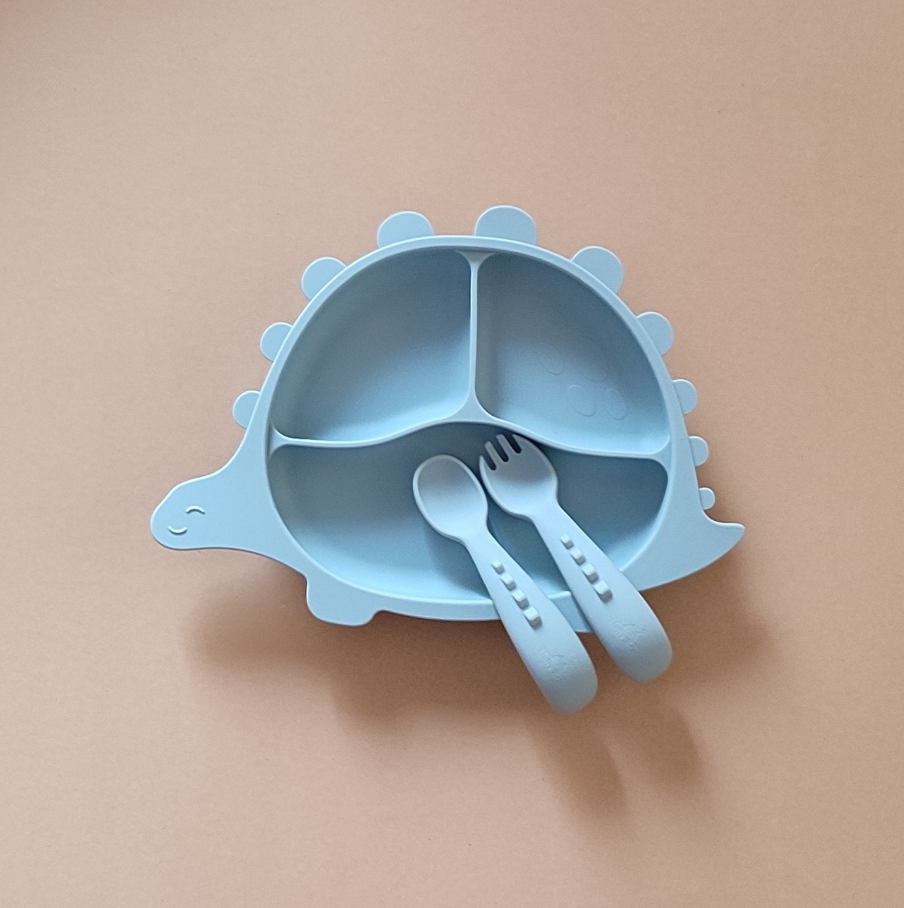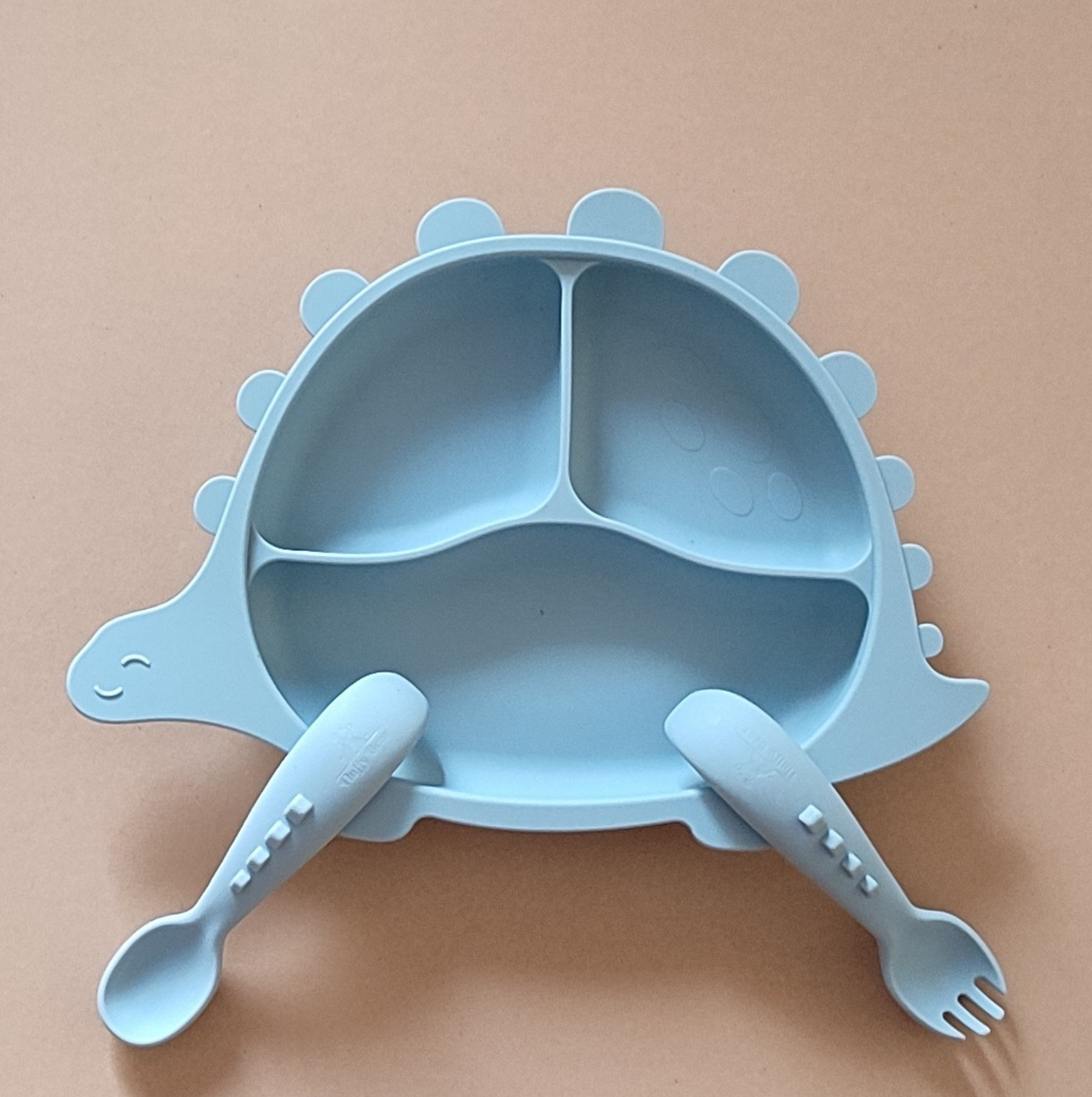 Silicone Divided Suction Plate (Dino) - Dusky Blue