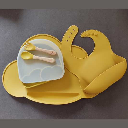 This is a Perfect Self Feeding Learning Kit! My Son enjoys having his meal on his own with these cute set. Mealtime is less messy now with these products. Easy to clean utensils. Great quality and safer utensils in affordable price. Let's choose food grade silicone products over plastic utensils. Happy Meal! Happy Child! Happy You! Thanks Fluffy Bear.